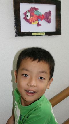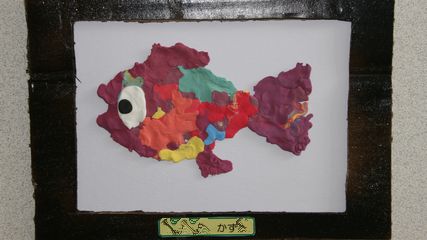 カズは魚です。お目々の部分がよく出来ていて、動きのある作品になっています。普段から観察したり、絵を描くのが好きな彼は写実派です。