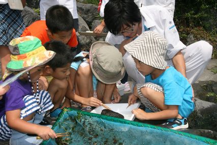 自治体の河川調査教室では、対象となる河川を数ヶ所回って、生息する生き物を捕獲し、河川の状態を判断するというものでした。